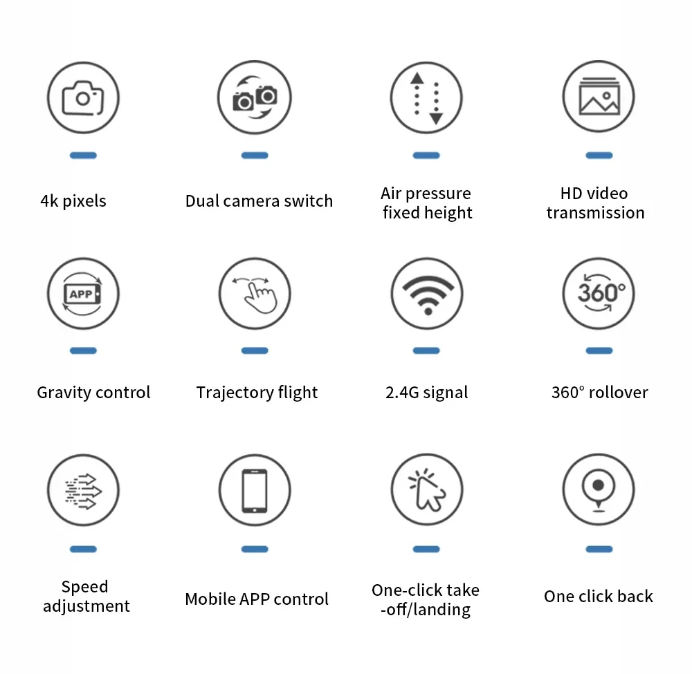 - 📱 App Control: Easily operate the drone via a dedicated smartphone app, offering intuitive control and real-time video streaming.